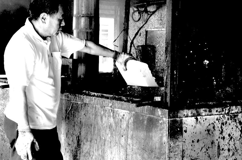 Our paper tubes are made of layers of slittered paper glued together by a transfer roller. - ホットメルト系糊を高温の溶解炉に投入します。200℃の状態で紙と紙の貼り合わせに使用します。